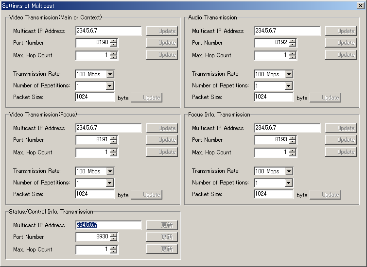 | Communication Select "Multicast" from main menu, then "Settings". To enable receiving application to communicate with sending application, please set up "Status/Control Info. Receiver" as matching sending application. | |